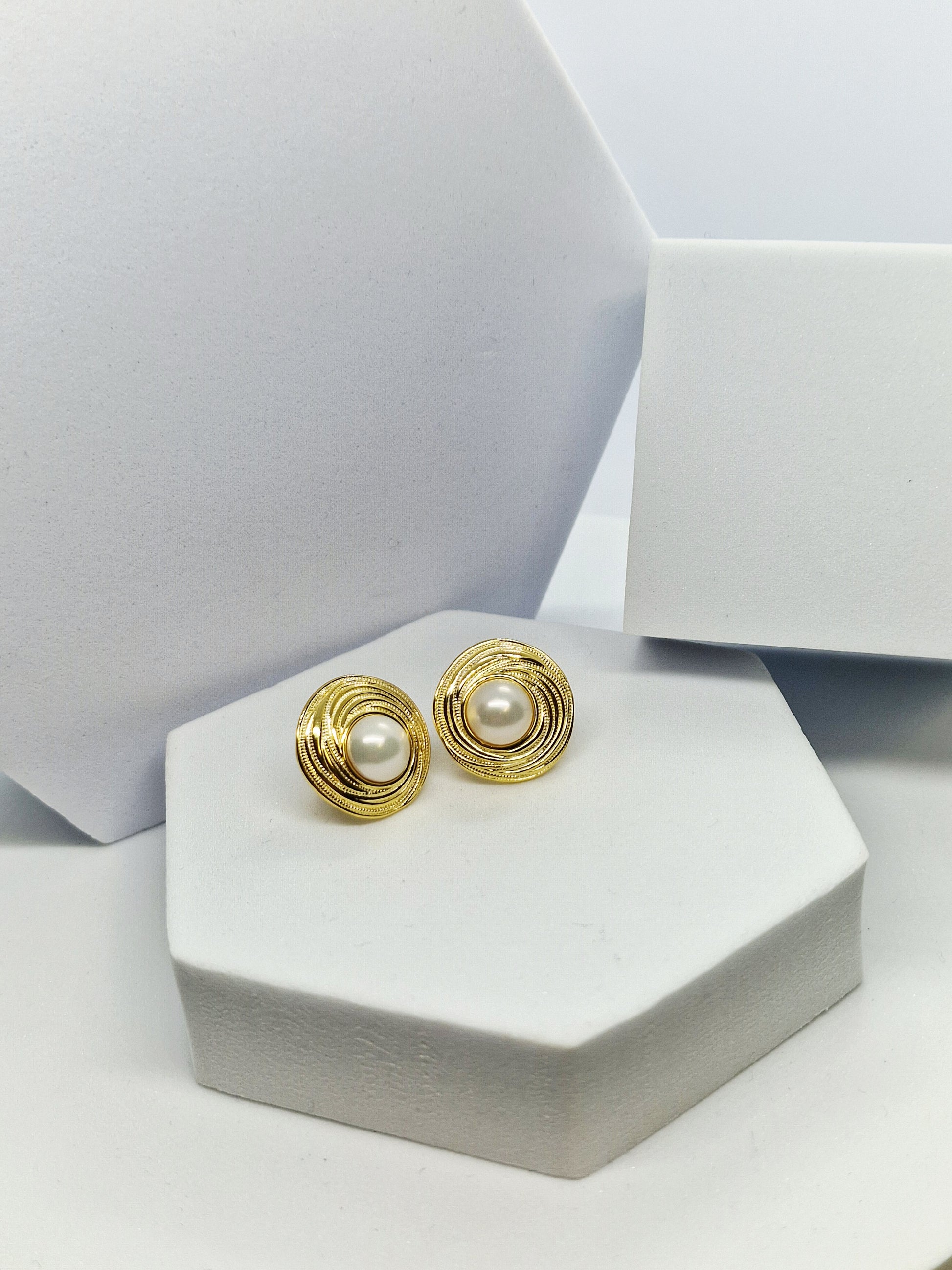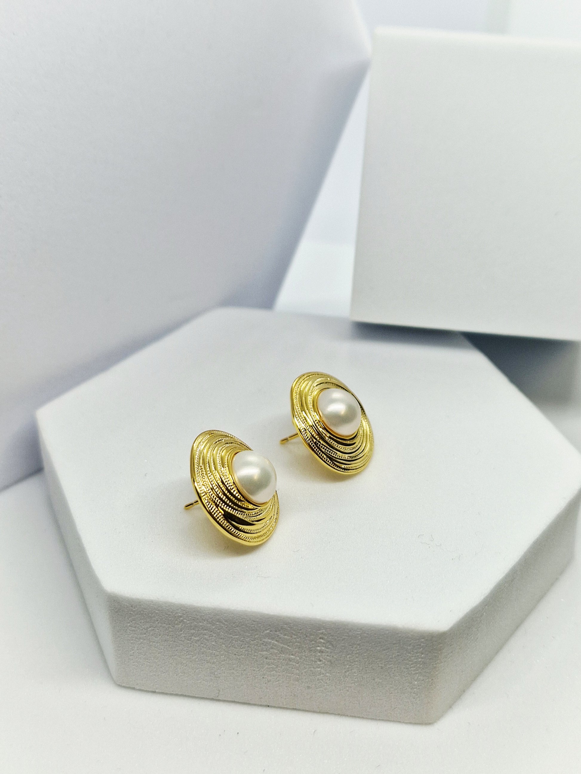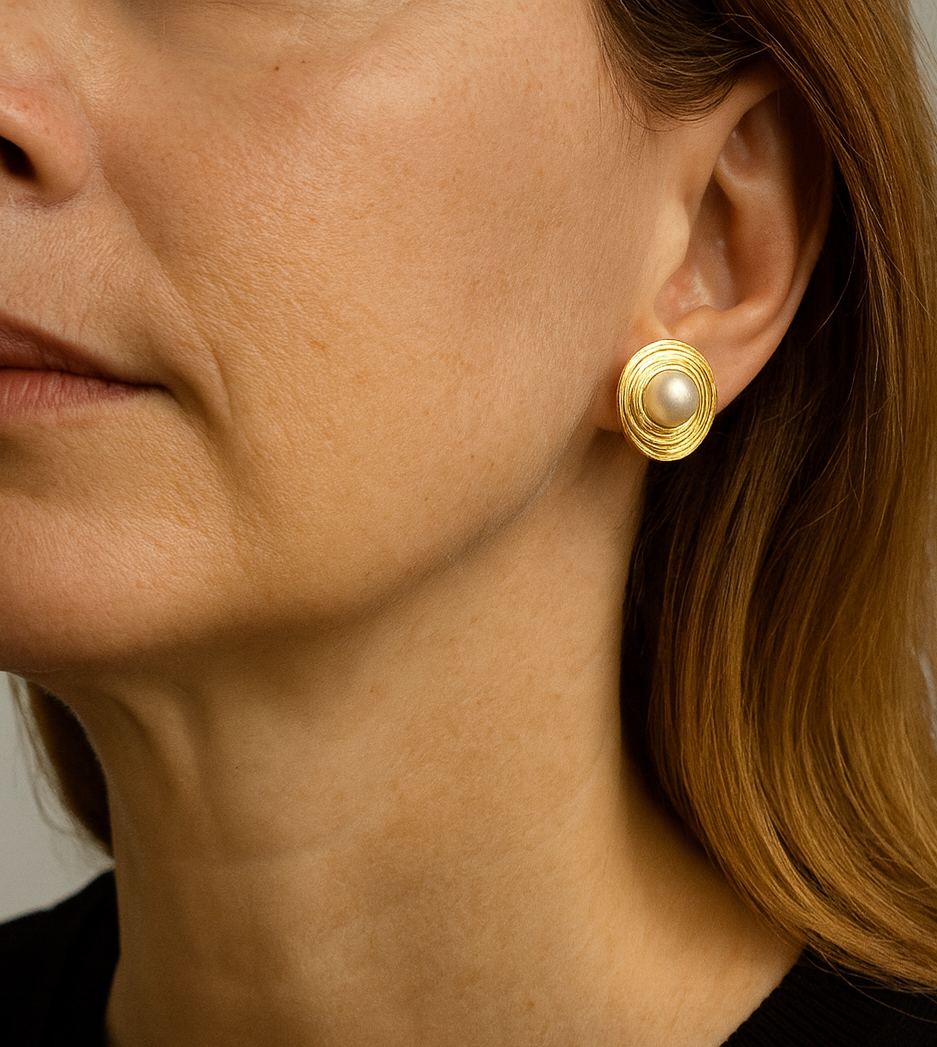 Orecchino con chiusura a farfalla con perla naturale centrale